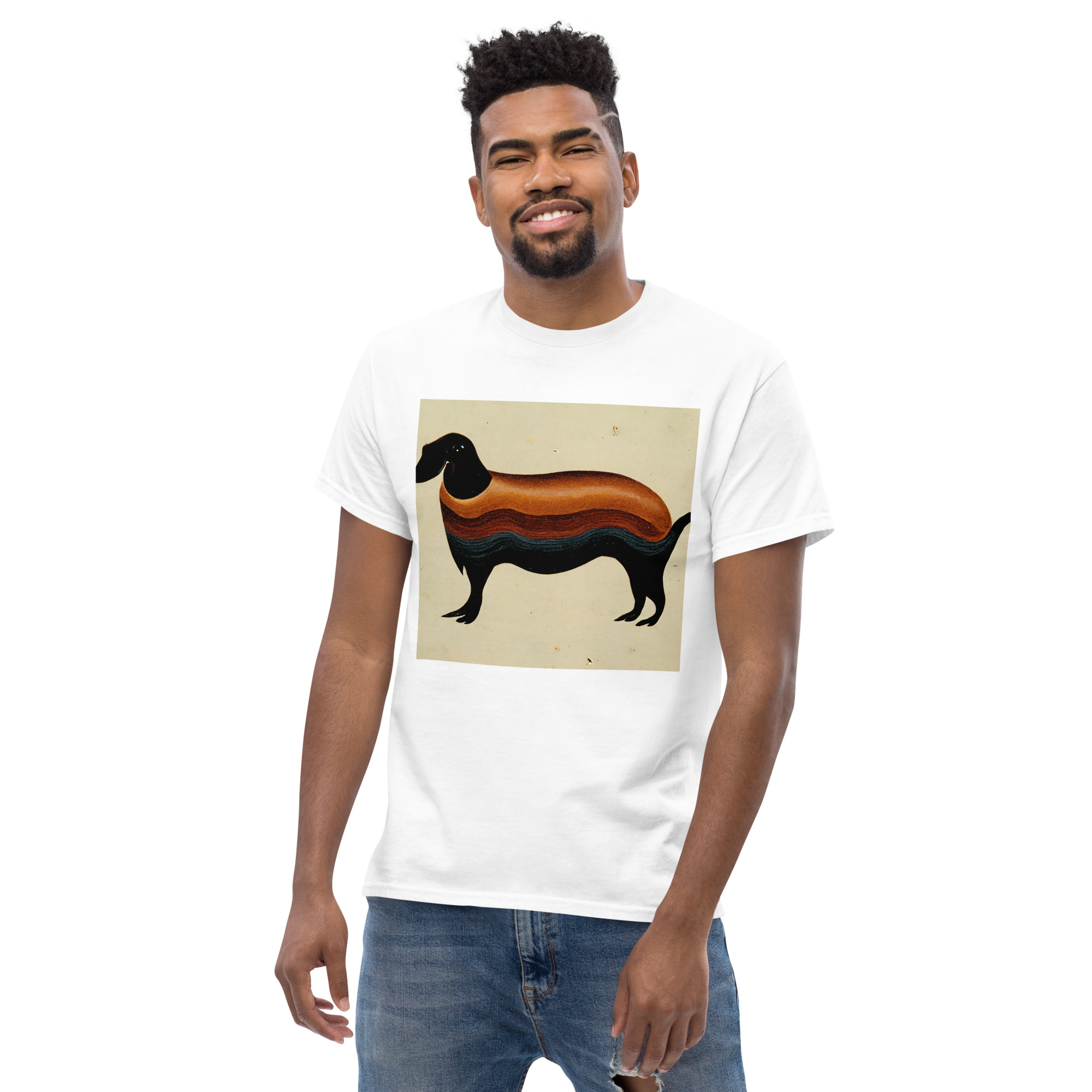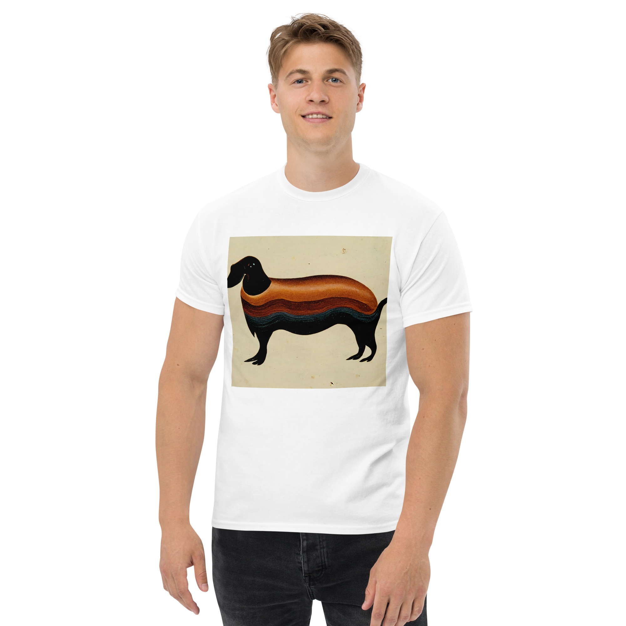 This unisex t-shirt is made from 100% organic ring-spun cotton and has a picture of a Dachshund in the style of Georgia O’Keeffe. The t-shirt is a fun way to show off your favourite dog breed!